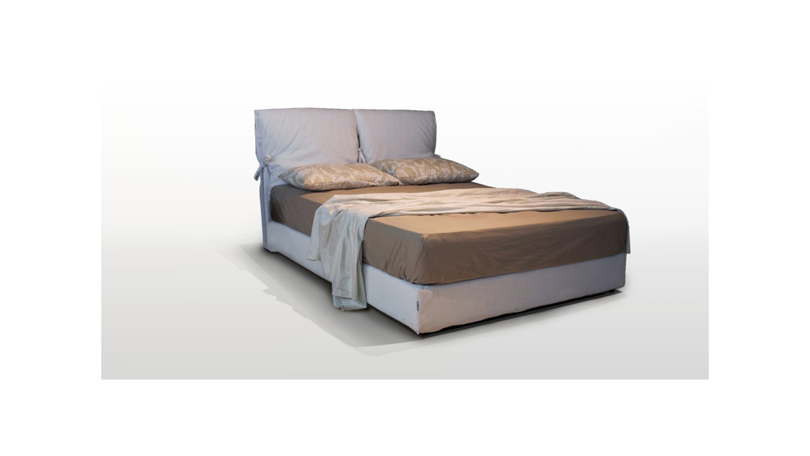 The Dee 3 bed challenges you to spend the entire day on it. Its unique and impressive headboard that is framed with charming bow tied cushions can also be coated with any fabric of your preference. So can its cushions and its frame, choosing between a tight fabric or one with a tuck. The Dee 3 bed can also support a storage mechanism.