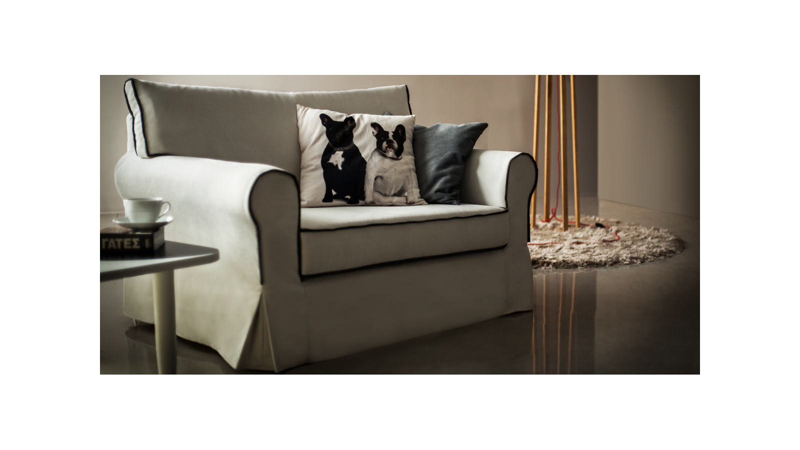 Ο καναπές Qq, Cue, με τα στρογγυλεμένα μπράτσα, δίνει νόημα στην έκφραση «παιχνίδι αντιθέσεων», αφού η κλασική εμφάνισή του έρχεται σε μία “γλυκιά” αντιπαράθεση με μία πιο μοντέρνα, ανανεωμένη εικόνα που ενισχύεται από τη διχρωμία που δημιουργεί το ρέλι στο τελείωμα του υφάσματος. Θα τον βρείτε σε πολλές διαστάσεις και με μηχανισμό κρεβατιού.