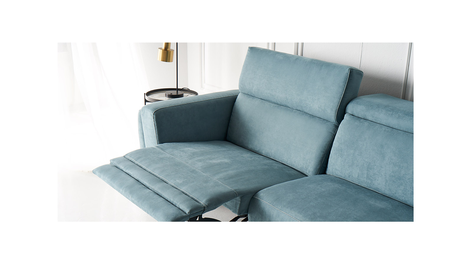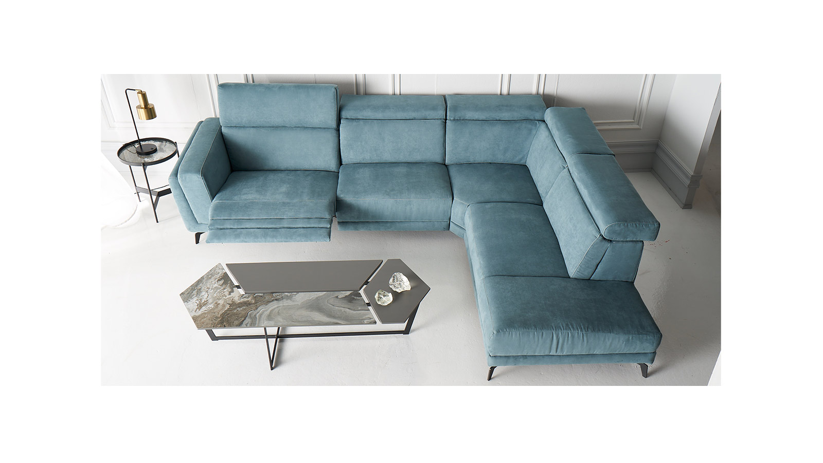 Ο γωνιακός καναπές Zeta είναι ένας μοντέρνος καναπές power recliner, που συνδυάζει εκλεπτυσμένο στιλ με πολυτελή άνεση. Η εμφάνιση μπορεί να είναι κομψή και χαμηλού προφίλ με τα προσκέφαλα προς τα κάτω ή με τα προσκέφαλα προς τα πάνω για μεγιστοποίηση του επιπέδου άνεσης. Με διακριτά κουμπιά ανάκλησης και χειροκίνητο ρυθμιζόμενο προσκέφαλο.